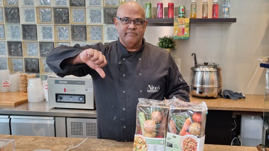Als je naar de achterkant van het groentepakket kijkt, zie je onder meer de volgende ingrediënten: sperzieboon, prei, rode paprika, winterpeen, aardappel, zoete aardappel en gedroogde tomaat. Op Instagram regende het klachten over de ingrediëntenlijst, omdat het geen authentiek Surinaamse roti oplevert. Ook Tanni Sanichar, eigenaar van Nino’s Surinam Food en een liefhebber van roti, deelt deze mening.